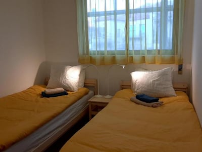O apartamento tem dois bonitos quartos luminosos. São limpos, simples e funcionais. Um dos quartos tem uma cama dupla e banho privado externo, acessível pelo corredor, o outro tem duas camas de solteiro e banho comum com duche. A utilização da cozinha equipada, com mesa e quatro cadeiras, assim como do espaçoso terraço está incluída. No terraço, podemos sentar-nos, com um livro ou o telemóvel, talvez uma bebida, e escutar a vida gaiense com os seus sons oriundos dos pátios vizinhos. Na rua, há lugares de estacionamento com parcómetro, nas ruas perpendiculares há bastantes lugares gratuitos.